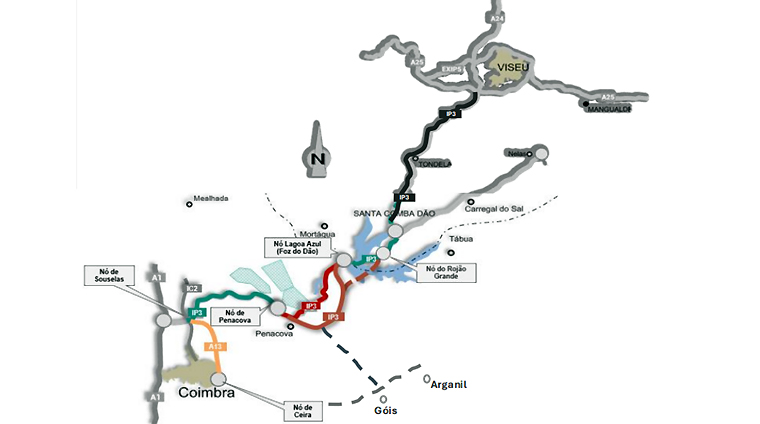 O troço Santa Comba Dão/Viseu já está em obra. Foi ainda determinada a realização de estudos para ligação a Góis e Arganil, que constituirá projeto autónomo.