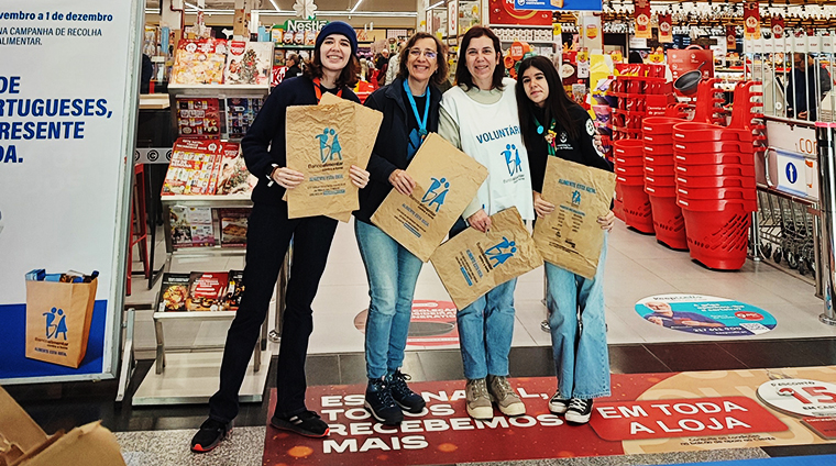 Durante o fim de semana, os voluntários estarão nos supermercados a distribuir sacos para que os clientes possam doar produtos não perecíveis como leite, conservas, azeite, açúcar, farinha e massas, entre outros.